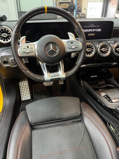 - Volante AMG forrado en cuero.